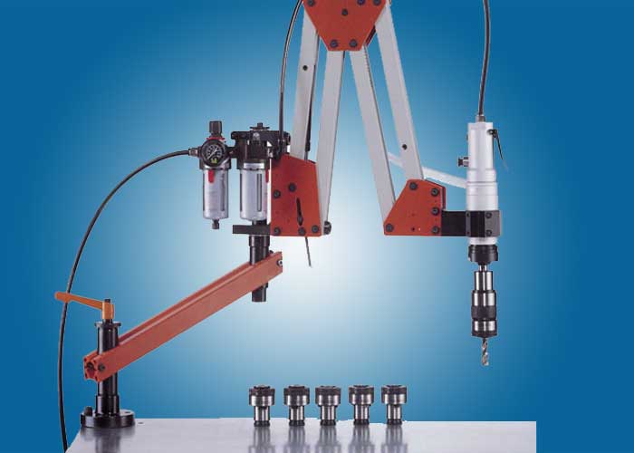 優質氣動攻絲機重復定位迅速,可以在一塊工件上連續攻絲作業,免去了老式攻絲機每攻絲一次,重新調整工件位置的不便,大幅度提高生產效率;特有的萬向頭,可以保證攻任何角度的螺